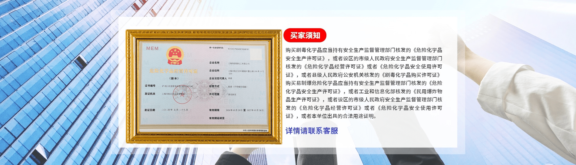 上海恒新德化工有限公司自创办以来,以追求质量、诚信服务为己任,不断强化技术力量,完善管理水平,经过历年的努力,公司已发展成为一家跨区域多元化经营的综合性企业。上海恒新德化工有限公司坐落在上海金山,是一家以销售批发为主的化工有限公司。公司常备 盐酸,硫酸等酸碱产品批发销售,100多种各类基础化工材料、各类金属发黑剂、金属仿古剂、金属表面处理剂、二氧化硒、甲酸、酒石酸锑钾、硫酸镍、氢氧化钠、三氯化铁、硝酸铈、亚氯酸钠、亚硝酸钠、磷酸、植酸、硫酸铜、硫氰酸钠、氟锆酸、酒石酸钾钠、氧化锌、硅烷陶化剂、钼酸钠等化工原料。